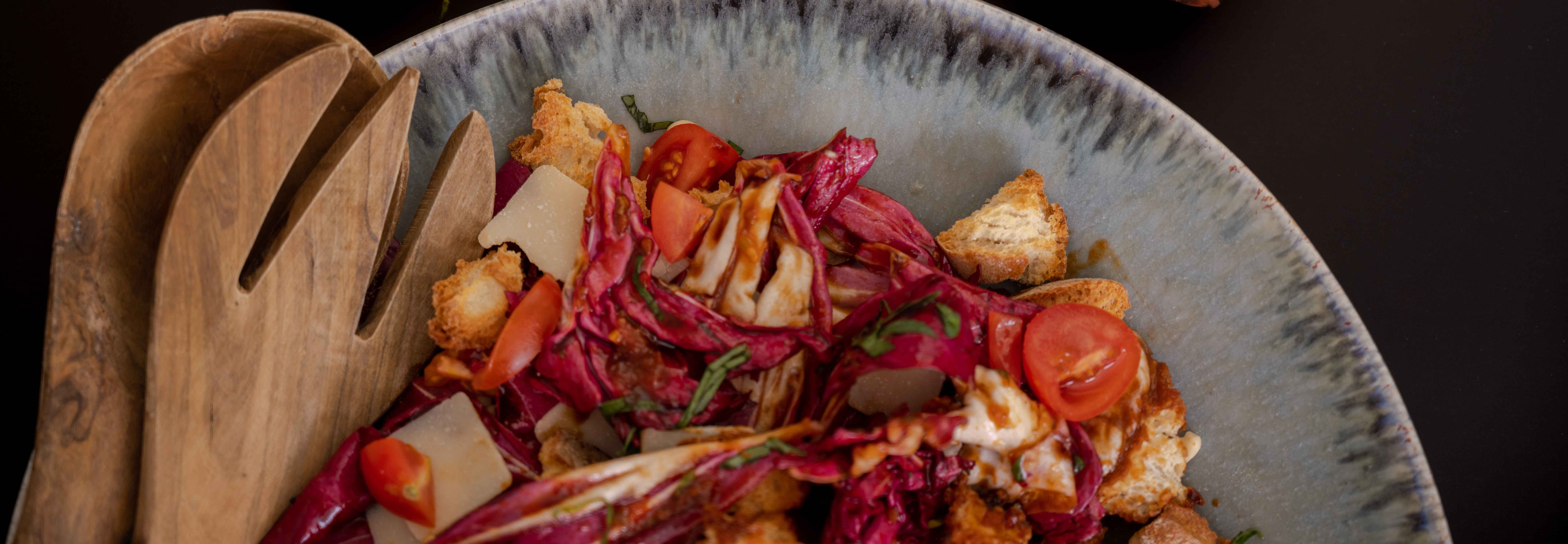Super Tipp gegen Lebensmittelverschwendung: Der Salat eignet sich perfekt, um nicht mehr ganz so frisches Ciabatta und Brot aufzubrauchen. Ihr habt noch ein Baguette vom Sandwich oder Grillen über? Dann rein damit!