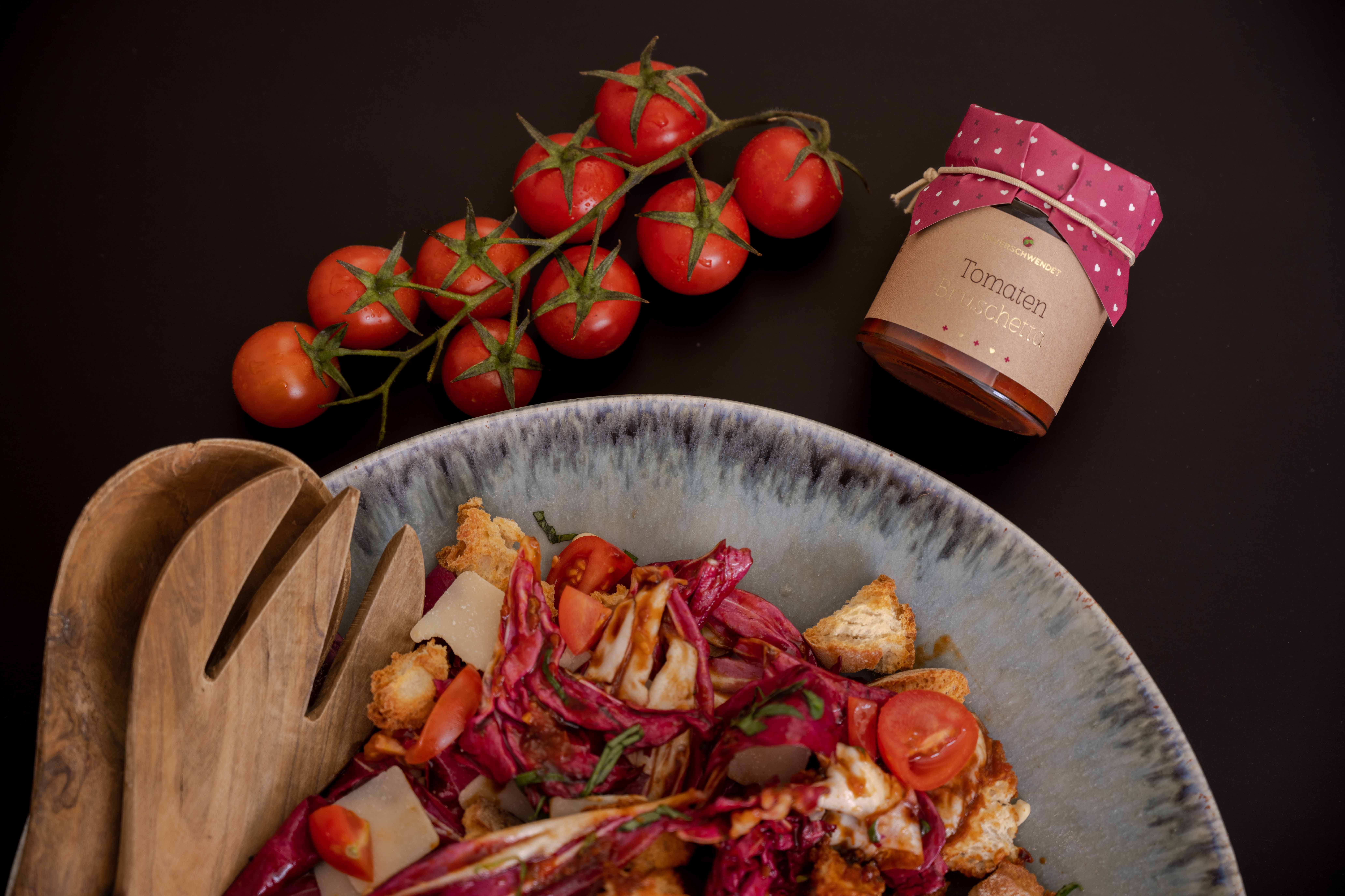 Gerettete Tomatenparty mit Bruschetta-Brotsalat