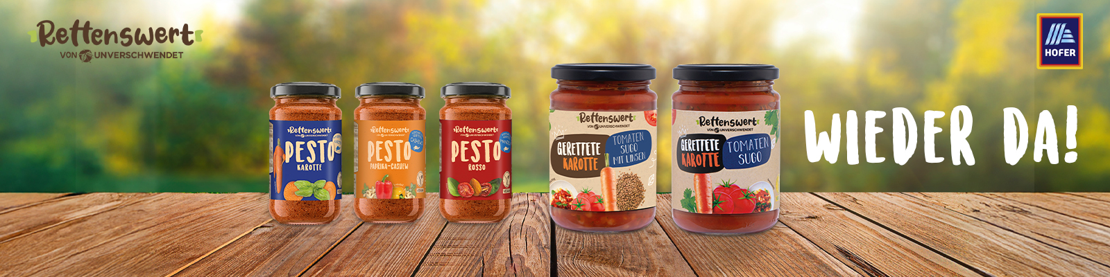 Wir bei RETTENSWERT glauben, dass Geschmack keine Normen braucht. Deshalb füllen wir mit 27. März die HOFER Regale wieder mit deinen Favoriten auf. Unsere Pesti und Sugi sind vollgepackt mit geretteten Zutaten, die viel zu gut fürs Verschwenden sind.