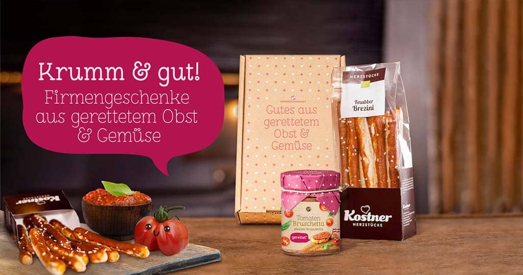 Mit deinen Geschenken hilfst du, Lebensmittelverschwendung zu vermeiden und machst deinen Kund:innen und Mitarbeiter:innen eine nachhaltige Freude.
