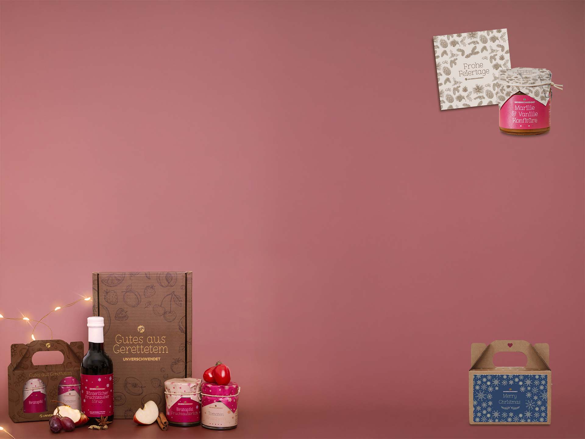 Ob als kleines Dankeschön, Weihnachtsgeschenk oder Give-Away auf Messen und Events: unsere Feinkost aus geretteten Lebensmitteln bereitet immer Freude. Mit eigenem Branding werden unsere Geschenke zur ganz besonderen Aufmerksamkeit. So durften wir schon viele tolle Projekte für unsere Kund:innen umsetzen.